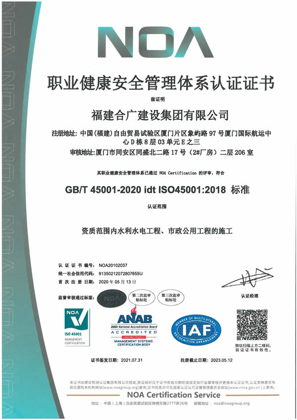 福建合廣建設(shè)集團(tuán)有限公司,注冊資本5188萬元人民幣,公司位于廈門市同安區(qū)鳳山一里151-17號(hào)。本公司成立于2013年,公司具備市政公用工程、水利水電工程、房屋建筑工程、公路工程、園林綠化等多專業(yè)施工資質(zhì)。企業(yè)從業(yè)人員100多人,各類專業(yè)技術(shù)人員70多人,其中高級(jí)職稱8人,中級(jí)職稱40多人,一級(jí)建造師6人,二級(jí)建造師15多人。